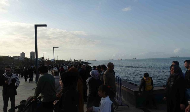 Yağışlı havanın son bulmasını fırsat bilen vatandaşlar İskenderun Sahili'ne akın etti
