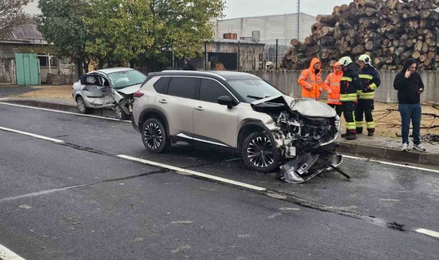 Yağışlı yolda kayan otomobil karşı şeride geçerek kaza yaptı: 1 yaralı