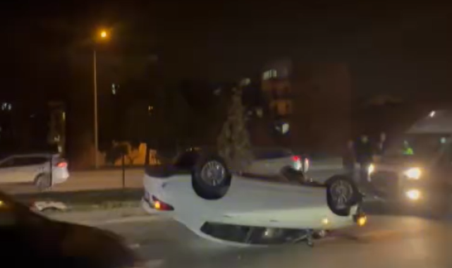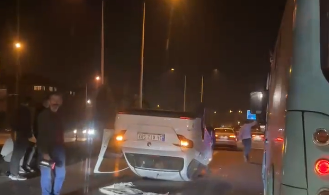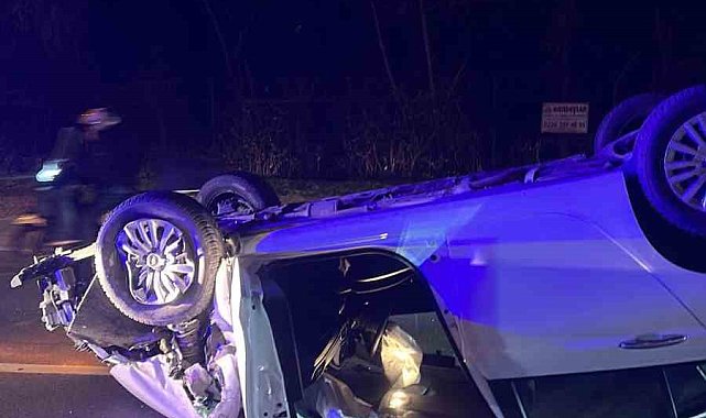 Yalova'da sürücüsünün alkollü olduğu öğrenilen otomobil önce yolcu minibüsüne, ardından kaldırıma çarparak takla attı.
