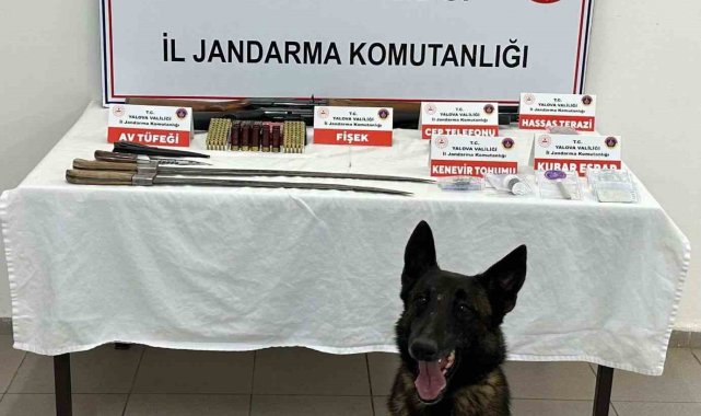 Yalova'da jandarma tarafından düzenlenen uyuşturucu operasyonunda gözaltına alınan 3 kişiden biri tutuklandı.Alınan bilgiye göre, Yalova İl Jandarma Komutanlığı, Termal ilçesinde ikamet eden E.K., M.K. ve Y.K.'nin evlerinde uyuşturucu madde bulunduğu bilgisine ulaştı. Elde edilen bilginin değerlendirilmesi üzerine, söz konusu ikamette Kaçakçılık ve Organize Suçlarla Şube Müdürlüğü ve Termal İlçe Jandarma Komutanlığı unsurlarınca arama gerçekleştirildi.Aramada baca deliğine saklanan uyuşturucu madde narkotik dedektör köpeği tarafından bulundu. Aramalarda 12 gram esrar, 6 gram kenevir tohumu, hassas terazi, 300 adet tabanca fişeği, 2 ruhsatsız av tüfeği, 10 av tüfeği kartuşu, 2 kılıç ve 2 cep telefonu ele geçirildi. 3 şüpheli ise gözaltına alındı.Adli makamlara sevk edilen şüphelilerden E.K. tutuklanırken M.K. ve Y.K. ise adli kontrol şartıyla serbest bırakıldı.