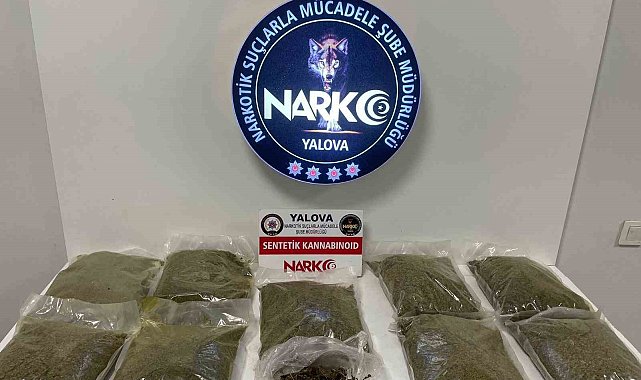 Yalova'da polis tarafından düzenlenen uyuşturucu operasyonunda 2 kişi gözaltına alınırken, 9 kilo 730 gram sentetik kannabinoid ele geçirildi.