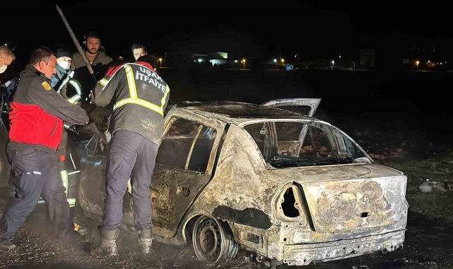 Uşak'ta yol kenarında bulunan araç bilinmeyen bir nedenle birden alev aldı. Söndürme çalışmalarının ardından otomobil içerisinde yanarak can vermiş bir kişiye rastlandı.