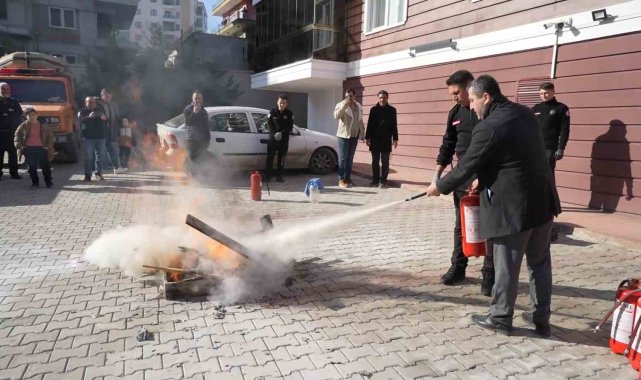 Yangın faciasının ardından apartman sakinlerine teorik ve uygulamalı eğitim