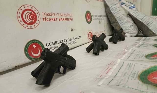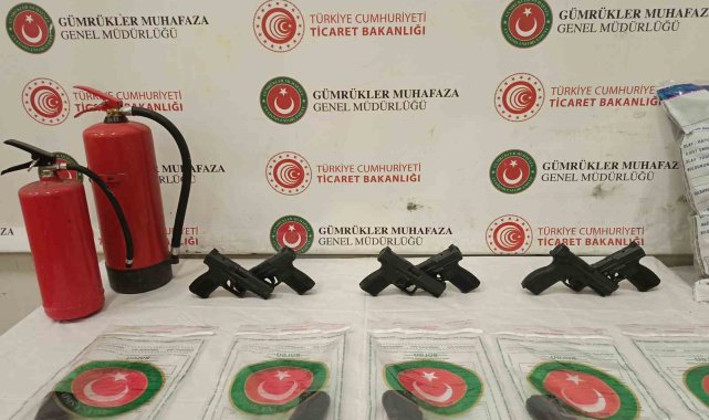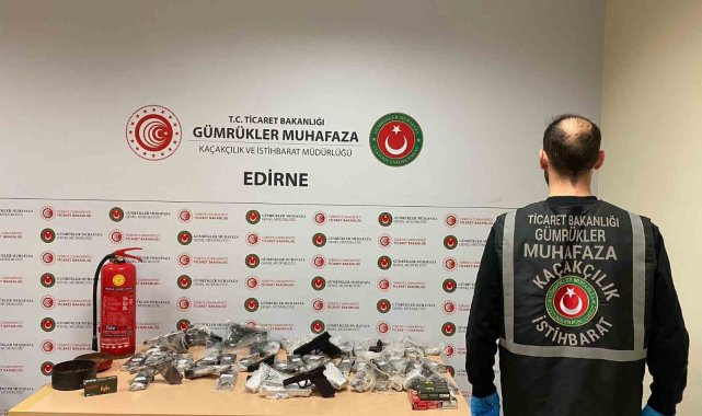 Edirne Kapıkule Sınır Kapısı'nda düzenlenen operasyonlarda, yangın tüpüne ve tırın çeşitli yerlerine gizlenmiş tabanca ve mermi ele geçirildi.
