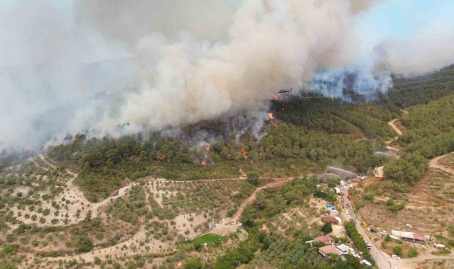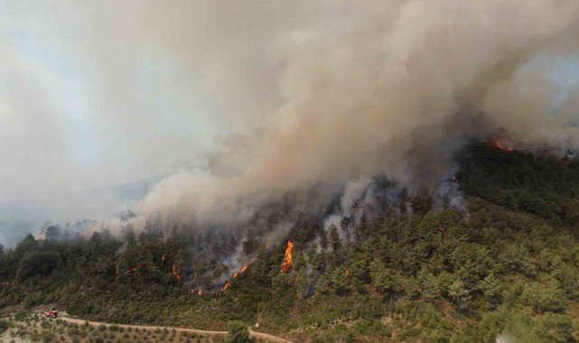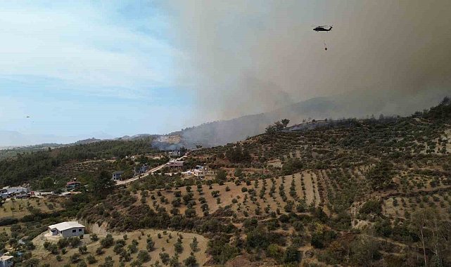 Hatay'da yangının 25'inci saatinde ekiplerin karadan ve havadan müdahalesi dronla görüntülendi.