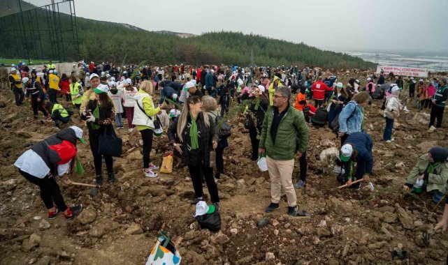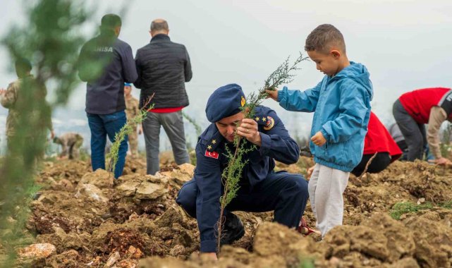 Manisa'da 11 Kasım Milli Ağaçlandırma Günü dolayısıyla yangında küle dönen ormanlık alanlarda binlerce fidan minik ellerde toprakla buluştu.