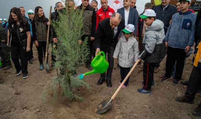 Manisa'da 11 Kasım Milli Ağaçlandırma Günü dolayısıyla yangında küle dönen ormanlık alanlarda binlerce fidan minik ellerde toprakla buluştu.Manisa'da 11 Kasım Milli Ağaçlandırma Günü dolayısıyla fidan dikim etkinliği düzenlendi. Manisa Valiliği koordinasyonunda bir çok kurumun da desteğiyle gerçekleştirilen etkinlikte geçtiğimiz yaz yangında büyük hasar alan Yunusemre ilçesine bağlı Karakoca Mahallesi'ndeki alan fidan dikimi için hazırlandı. Saygı duruşunda bulunulması ve ardından İstiklal Marşı'nın okunmasıyla başlayan etkinlikte Manisa Valisi Vahdettin Özkan, öğrencilerle beraber fidan dikti."Yanan alanlardan çok daha fazlasını ağaçlandıracağız"Fidan dikim töreninde konuşan Vali Özkan, "Yeşil vatanın korunması, muhafaza edilmesi, çevresel değerlerin korunması hem insani bir vazife, vicdani bir vazife. Aynı zamanda milletimizin bu hissiyatına tercüman olarak kamunun, devletimizin, hükümetimizin, ilgili bakanlıklarımızın stratejik olarak öncelediği bir alan. Biz de bugün burada bu faaliyeti icra ediyoruz. Bugün eş zamanlı olarak 16 ayrı lokasyonda bu faaliyet icra ediliyor. İlimizde yaklaşık 35 bin fidan dikilecek sadece bugün için. Bu ağaçlandırma seferberliğini artarak devam ettireceğiz. Özellikle yanan alanlar olmak üzere bu yanan alanlardan çok daha fazlasını ağaçlandıracağız" dedi.Özellikle minik öğrencilerin yoğun katılım gösterdiği etkinlikte minik eller rehberleri eşliğinde fidanları toprakla buluşturdu.