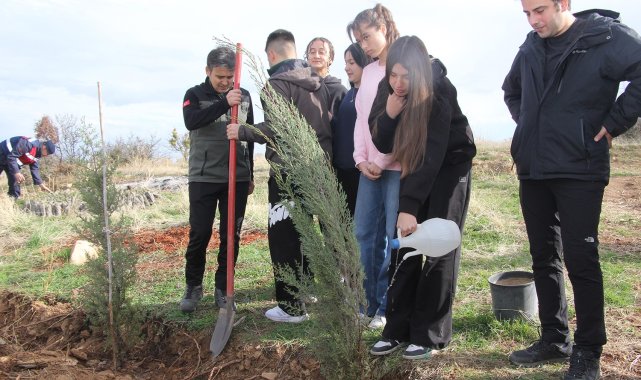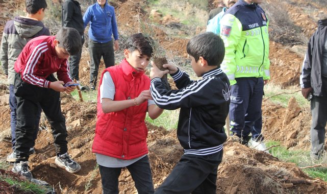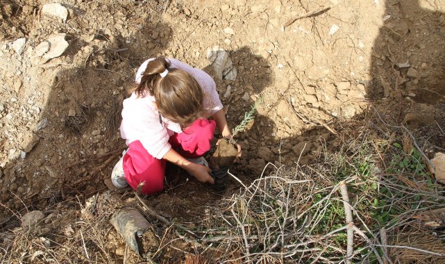 Yangında küle dönen ormanlık alanda fidan diktiler