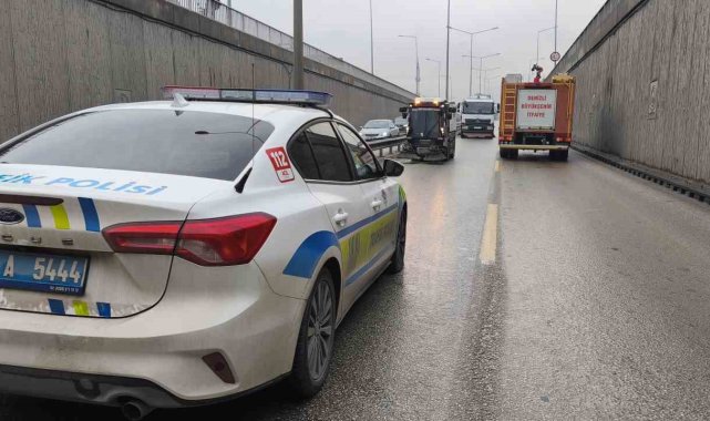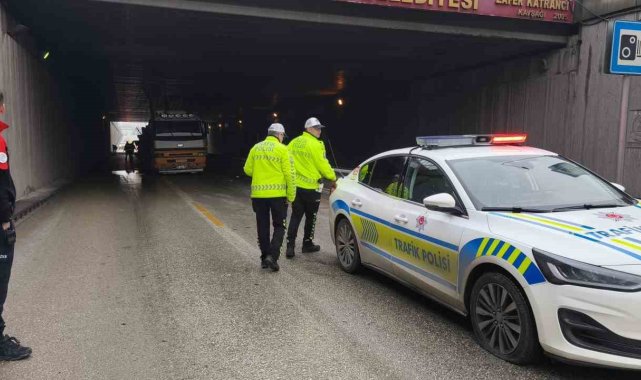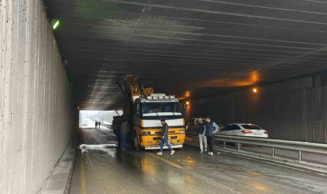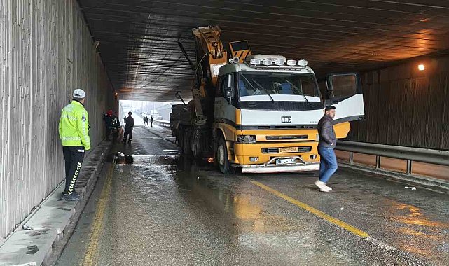 Denizli'de inşaat yapı malzemeleri taşıyan vinç alt geçitte sıkıştı. Alt geçit trafiğe kapatılırken, ekiplerin sıkışan vinci kurtarma çalışmaları sürdürüyor.Kaza, Merkezefendi ilçesi İlbade Mahallesi İzmir Bulvarı Zafer Katrancı alt geçidinde meydana geldi. Edinilen bilgilere göre Sinan K. (41) yönetimindeki 15 LF 616 plakalı vinç ile alt geçitten geçeceği sırada vinç kolunu geçidin girişine çarpmasına rağmen devam etti. Yaklaşık 10 metre ilerleyen vinç daha sonra tünel içerisinde sıkıştı. Çevredeki vatandaşların ihbarı üzerine bölgeye itfaiye ve polis ekipleri sevk edildi. Polis ekipleri trafik güvenliğini sağlamak amacıyla tedbirler aldı. Vincin çarpması nedeniyle yola çok miktarda yağ döküldüğü görüldü. İzmir'den şehir merkezi yönüne ulaşıma kapatılan tünel yoğun trafiğe neden oldu. Tünelde sıkışan vincin kurtarılmasının ardından karayolunun tekrar trafiğe açılması bekleniyor.Öte yandan, araç sürücüsü Sinan K.'ya trafik güvenliğini tehlikeye düşürdüğü gerekçesiyle cezai işlem uygulandığı öğrenildi. Kazayla ilgili soruşturma başlatıldı.