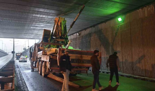 Yapı malzemeleri taşıyan vinç alt geçitte sıkıştı