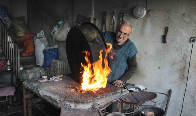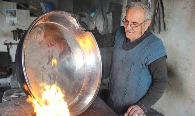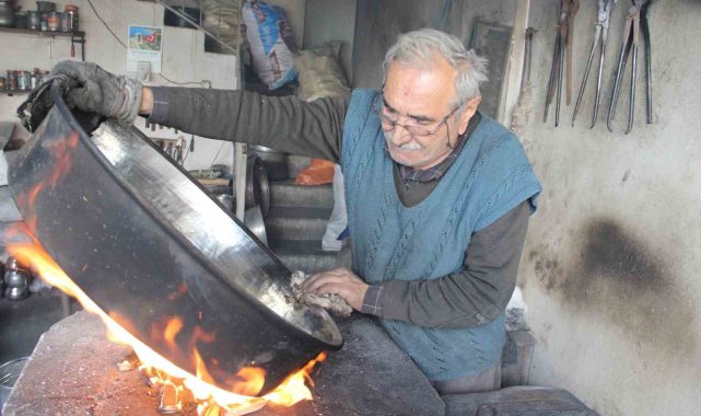 Çorum'da 10 yaşında adım attığı kalaycılık mesleğini 63 yıldır aralıksız sürdüren Süleyman Özkılıç, gelişen teknolojiyle birlikte unutulmaya yüz tutan zanaatını yaşatmak için adeta zamana karşı direniyor.