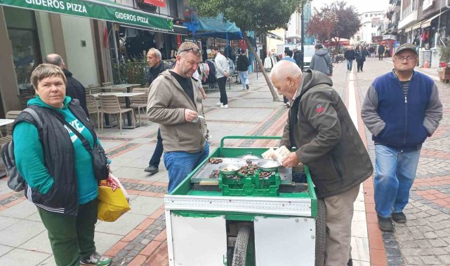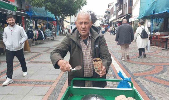 EDİRNE (İHA) – Edirne'de 73 yaşındaki Yılmaz Erol, 50 yıldır seyyar tezgâhında kestane satarak geçimini sağlıyor.Edirne'de 73 yaşındaki Yılmaz Erol'un yarım asırlık geçim kaynağı kestane satmak oldu. Genç yaşta bir ustasından işi öğrenen Erol, 50 yıldır sonbahar ve kış aylarında Saraçlar Caddesi'nde seyyar tezgâhında kestane satarak hayatını sürdürüyor.Yaz aylarında kaynamış mısır, kışın ise kestane satan Yılmaz Erol, üç çocuğunu bu işle kazandığı parayla okutup evlendirdiğini belirterek, "Helal kazançla kimseye muhtaç olmadım" dedi. Erol, mesleğini sürdürmekten gurur duyduğunu ifade etti."Kestaneyi seven, her gün gelir"Saraçlar Caddesi'nde vatandaşların uğrak noktası hâline gelen Erol'un tezgâhında 100 gram kestane 200 liradan satılıyor. Soğuk kış günlerinde sıcak kestane kokusuyla caddenin havasını değiştiren Erol, "Kestaneyi seven, her gün gelir" diye konuştu."Kestaneler Sinop'tan geliyor"Vatandaş Ahmet Alagöz ise Yılmaz Erol'un sattığı kestanelerin lezzetinden memnun olduğunu belirterek, "Kestaneler Sinop'tan geliyor. Daha kaliteli olduğu için kestane kebap yemeye özellikle buraya geliyoruz" ifadelerini kullandı."Hava şartları elverirse Mart başına kadar da sürer"Kestane sezonunun şubat ayı sonuna kadar devam edeceğini belirten Erol, "Hava şartları elverirse mart başına kadar da sürer" dedi.