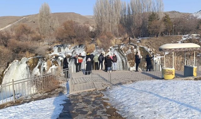 Yarıyıl tatilini fırsat bilen aileler Van'ın Muradiye ilçesindeki Muradiye Şelalesi'ne akın etti.İlçe merkezine 8 kilometre mesafedeki Muradiye Şelalesi yaz-kış misafir ağırlamaya devam ediyor. Pazartesi sona erecek yarıyıl tatili öncesi aileler çocuklarıyla iyi zaman geçirebilmek için şelaleye akın etti. Buz sarkıntılarının görsel şölen oluşturduğu şelale çevresinde aileler fotoğraf çektirerek anı ölümsüzleştirdi. İHA muhabirine konuşan ebeveynler yarıyıl tatilinin sona ermesiyle çocukların tekrar eğitime başlayacağı ve bu nedenle iyi zaman geçirilebilmek için şelaleyi ziyaret etmek istediklerini söyledi. Şelalenin her mevsim farklı bir görsel şölen oluşturduğunu söyleyen Şehriban Bulut, "Hafta sonunu değerlendirmek için buraya geldik. Yaz-kış fark etmez, her türlü çok güzel. Gelmek isteyenleri bekleriz" dedi. Adem Eminoğlu da fırsat buldukça buraya geldiklerini ifade ederek, "Hafta sonları ve tatillerde şelaleye gelip dinleniyoruz. İlçemizin ve bölgemizin en güzel yerlerinden biri. Stres atmak için harika bir ortam sunuyor. Kış mevsimindeyiz, ancak bu yıl yeterince kar yağmadığı için manzara beklediğimiz kadar etkileyici değil. Yine de her mevsim güzel" diye konuştu."Turizm potansiyeli artırılmalı"Şelalenin her zaman ziyaretçilerle dolup taştığını belirten Eminoğlu, "Türkiye'nin ve dünyanın dört bir yanından buraya gelenler var. Fotoğraf çekip gezmeyi çok seviyorlar. Umarım ilerleyen zamanlarda burası daha da gelişir, daha iyi restoranlar ve konaklama alanları yapılır. Böylece turizm canlanır ve hem ülkemiz hem de ilçemiz ekonomisine katkı sağlanır" şeklinde konuştu.Yarıyıl tatilinde keyifli vakit geçirdiklerini ifade eden öğrenciler ise şelaleye geldikleri için mutlu olduklarını, pazartesi ders başı yapacaklarını söyledi.