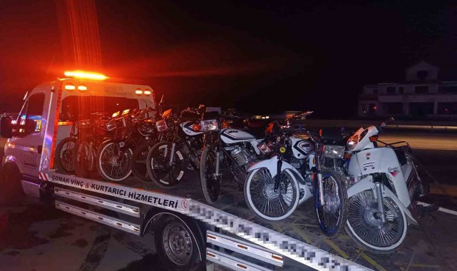 Sakarya'nın Akyazı ilçesinde yasadışı motosiklet yarışına katılan sürücülere ceza yağdı. Sürücülere, 102 farklı maddeden 326 bin 499 lira idari para cezası uygulanırken 20 motosiklet otoparka çekildi.Sakarya İl Jandarma Komutanlığı sorumluluk bölgesinde trafik güvenliğinin arttırılması ve korunması adına çalışmalarına devam ediyor. Bu çerçevede ekipler, Adapazarı, Hendek, Erenler ve Akyazı ilçelerinden Akyazı ilçesi Gebeş Mahallesi mevkiine gelen en az 70 motosikletten oluşan grubun yasadışı motosiklet yarışması düzenlediğini tespit etti. Olay yerine giderek yarış için toplanan gruba müdahale eden ekipler, birçok motosikletin; sürücü belgesiz şahıslar tarafından kullanıldığını, trafik güvenliğini tehlikeye soktuğunu, motosikletle egzoz bağırtıp, akrobatik hareketler yaparak kamunun rahat ve huzurunu bozduğunu tespit etti. Teknik özellikleri değiştirilmiş olan 11'i plakasız olmak üzere 20 adet motosiklet yakalanarak otoparka çekilirken motosiklet kullanıcıları hakkında '2918 Sayılı Karayolları Trafik Kanunu' çerçevesinde trafik ihlallerine ilişkin 102 farklı ceza maddesinden toplam da 326 bin 499 TL idari para cezası uygulandı.