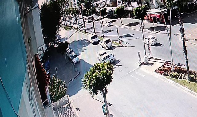 Antalya'da sola dönüş yasağı bulunan ışık sisteminde dönmeye kalkan otomobil, diğer yönden gelen bir başka otomobille çarpışırken kaza anları güvenlik kamerasına yansıdı.
