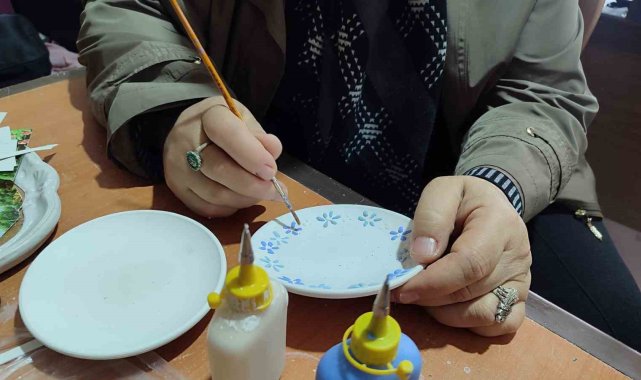 Kahramanmaraş Türkoğlu ilçesinde yaşayan iki çocuk annesi kadın katıldığı kurslar sayesinde hem üretmenin hem de iç huzurun kapılarını araladığını söyledi.Türkoğlu ilçesinde yaşayan 61 yaşındaki 2 çocuk annesi Sibel Akkaya, uzun yıllar boyunca ailesine ve sorumluluklarına öncelik verdiğini, son dönemde kendine zaman ayırarak rölyef ve çini gibi el sanatlarına yöneldiğini ifade etti.Her bir eserin sabır ve emeğin izlerini taşıdığını ve üretim sürecinin kendisine iyi geldiğini anlatan Akkaya, "Burada kendimi buldum. Kurs ortamı hem sosyal hem de psikolojik açıdan bana büyük katkı sağladı. Günlük hayatın stresinden uzaklaştım. Tepsi boyama, çini, rölyef gibi ürünlerle uğraşıyorum. Bana burası huzur veriyor. Boyama yaptıkça mutluluk duyuyorum, huzur buluyorum. Evde oturan kadınlara tavsiyem bu tür kurslara gelebilirler. Kendilerine katkı sağlayan şeyler üretebilirler. Boş durmasınlar. Bu tür kurslar hem stres dağıtıyor hem huzur veriyor hem de aile ekonomisine katkı sağlıyor. Ben burada yaptığım ürünleri arkadaşlarıma hediyeler ediyorum. Onlar da çok mutlu oluyor" dedi.