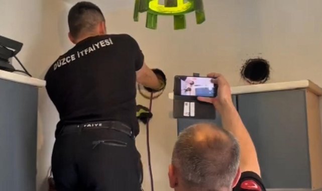 Düzce'de bulundukları yerlerde mahsur kalan yavru karga ve yavru kedi ekiplerin çabalarıyla kurtarıldı.