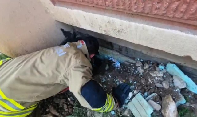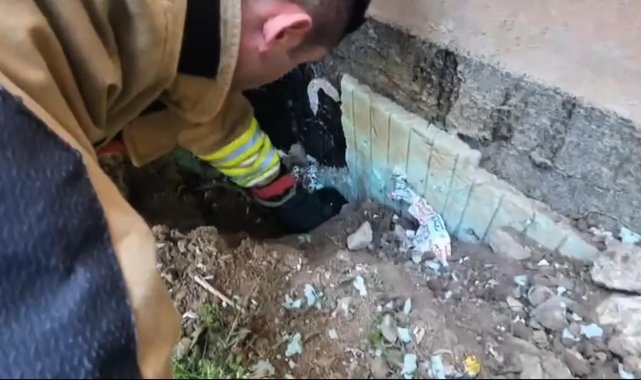 Yavru karga ve kediyi itfaiye kurtardı