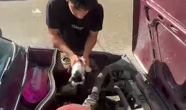 Erzurum'un Karayazı ilçesinde otomobilin motor bölümüne sıkışan yavru kedi hayvan sever tarafından fark edilerek kurtarıldı.Edinilen bilgiye göre, Karayazı ilçe merkezinde park halindeki otomobilden gelen sesler üzerine çevredeki bir vatandaş aracın motor bölümünde yavru kedinin sıkıştığı fark etti. Hayvan sever vatandaş aracın kaputunu açarak motor bölümündeki yavruyu sıkıştığı yerden çıkarıp sokağa bıraktı.