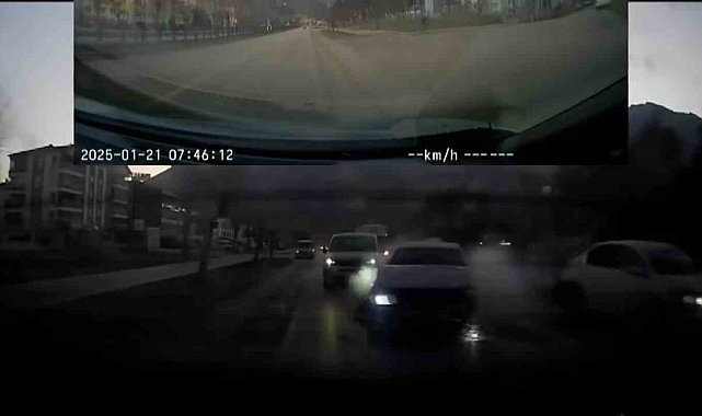 Amasya'da yaya geçidinden geçmekten olan yayaya yol veren otomobile arkasından gelen başka bir otomobil çarptı. Kaza anı başka bir otomobildeki araç kamerasına yansıdı.