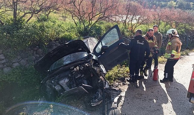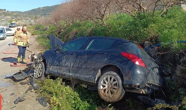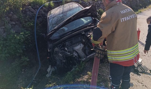 Hatay'da bahçe duvarına çarparak hurdaya dönen otomobilin sürücüsü yaralandı.