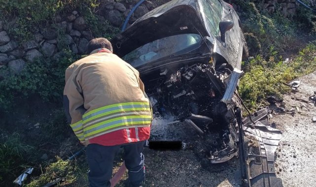 Yayladağı'nda bahçe duvarına çarpan otomobil hurdaya döndü