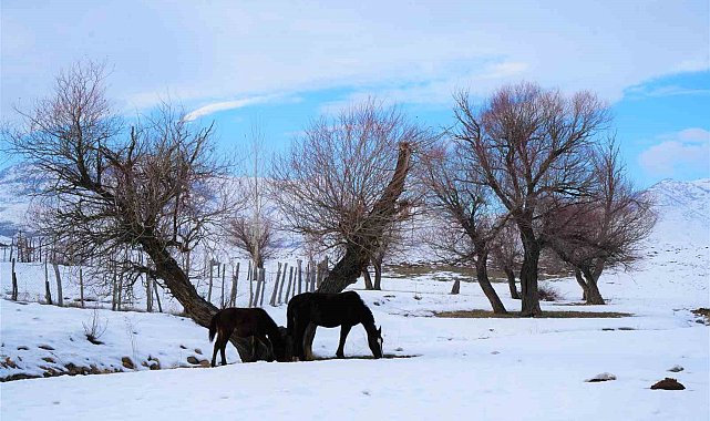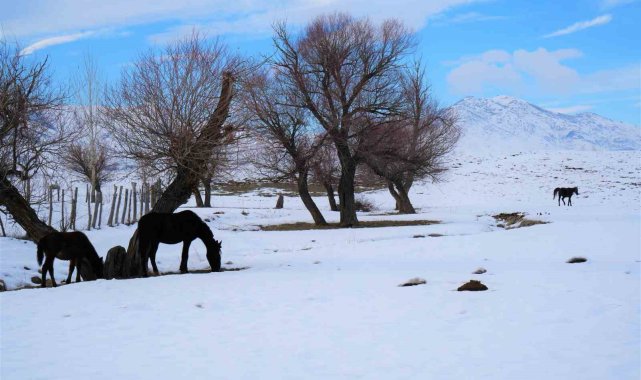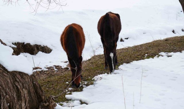 Yaz mevsiminde köy işlerinde kullanılan atlar kışın doğaya terk ediliyor