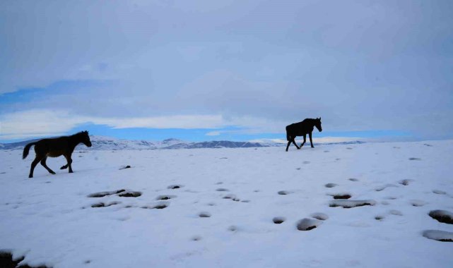Muş'ta kışın zor şartlarında açlık ve soğukla mücadele eden atlar yürek burktu.Muş'ta yaz aylarında yayla ve köy işlerinde kullanılan atlar kış mevsimi ile birlikte işler bitince doğaya terk ediliyor. Yaz aylarında yük taşımada ve binek olarak kullanılan bu hayvanlar, karlı arazilerde ve soğuk hava şartlarında yiyecek bulmakta zorlanıyor. Özellikle karın etkili olduğu bölgelerde açlıkla ve soğukla mücadele ederek hayatta kalmaya çalışan atların durumu yürek burkuyor.Kış şartlarının etkisini artırdığı bugünlerde, soğuk ve açlıktan dolayı zayıf düşen atlar kurtlara yem oluyor. Atların kış mevsiminde doğaya terk edildiğini söyleyen vatandaşlardan Ayetullah Güngör, çoğu atın zayıf düşerek kurtlara yem olduğunu belirtti. Güngör, "Gördüğünüz bu atlar sahipsizler. Vatandaşlar yazın bu atları işlerinde kullanıyor, kış olduğunda yem vermemek için dışarı salıyor. Atlar bu soğukta aç ve susuz kalıyor. Tabi bazı duyarlı insanlar var bazen onlar sahip çıkıyor ama bazıları da kurtlara yem oluyor maalesef" dedi.