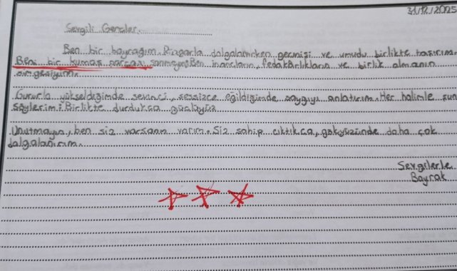 Bursa'da eğitimde akademik başarısının yanı sıra sosyal, sanatsal ve sportif faaliyetleriyle de öne çıkan Nilüfer Sadettin Türkün Ortaokulu, ikinci dönemin ilk gününde anlamlı bir etkinliğe imza attı.Milli Eğitim Bakanlığı'nın talimatı ve Türkiye Yüzyılı Maarif Modeli vizyonu doğrultusunda düzenlenen "İlk Derste Bayrak Sevgisi" temalı etkinlikte, okul bahçesi kırmızı-beyaz renklere büründü. Etkinlik kapsamında bin öğrenci, ellerinde bin Türk bayrağıyla okul bahçesinde bir araya geldi. Öğrencilerin aynı anda bayraklarını açmasıyla oluşan görüntü, görsel bir şölen oluştururken, etkinlik duygu dolu anlara sahne oldu.Programda konuşan Okul Müdürü Asım Altuntaş, bayrak sevgisinin milli kimliğin korunması ve toplumsal birlikteliğin güçlendirilmesi açısından büyük önem taşıdığını vurguladı. Altuntaş konuşmasında şu ifadelere yer verdi;"Bayrak sevgisi, bir milletin ortak değerlerine sahip çıkmasının en güçlü göstergesidir. Çocuklarımıza bu bilinci küçük yaşlarda kazandırmak, güçlü bir gelecek inşa etmenin temel şartıdır. Bugün burada ortaya çıkan tablo, birlik ve beraberliğimizin en güzel ifadesidir. Bu anlamlı etkinliğin hayata geçirilmesinde emeği geçen tüm öğretmenlerime ve öğrencilerime yürekten teşekkür ediyorum."Etkinlikler çerçevesinde Türkçe öğretmeni tarafından öğrencilere "Bayrağın öğrenciye seslenişi" konulu bir paragraf yazma çalışması da yaptırıldı. Çalışma kapsamında 6/D sınıfı öğrencisi Sena Selen tarafından kaleme alınan paragraf, içerdiği duygu ve anlatımıyla dikkat çekti.Nilüfer Sadettin Türkün Ortaokulu'nda gerçekleştirilen bu etkinlik, öğrencilerin milli ve manevi değerlerle buluşmasını sağlarken, bayrak sevgisinin eğitim yoluyla pekiştirilmesine çok önemli katkı sundu.