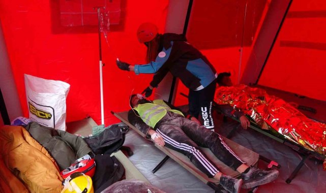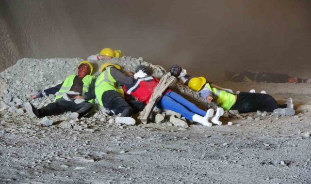 Yozgat'ta, Kayseri-Yerköy Yüksek Hızlı Tren Hattı inşaatında yapımı süren tünelde patlama tatbikatı gerçekleştirildi. Senaryo gereği tünel içerisinde yangın çıktı, enkaz altında kalan 15 işçi için kurtarma çalışması gerçekleştirildi.Kayseri-Yerköy Yüksek Hızlı Tren şantiyesine ait Delice köyü yakınlarındaki tünelde patlama tatbikatı gerçekleştirildi. Senaryo gereği patlamada yangın çıkarken içeride 15 işçi de mahsur kaldı. İhbar üzerine olay yerine 112 sağlık, AFAD, UMKE, itfaiye ve jandarma ekipleri sevk edildi.Jandarma ekipleri geniş güvenlik önlemleri alırken UMKE ve sağlık ekipleri yaralılara müdahalede bulundu. Yaralılar enkazdan kurtarılarak ambulanslar ile bölgedeki hastanelere kaldırıldı. Gerçeği aratmayan tatbikat başarılı bir şekilde sonuçlandırıldı.Yozgat Valisi Mehmet Ali Özkan, deprem, sel ve yangın tatbikatları yaparak afetlere hazırlık çalışmalarını sürdürdüklerini söyledi. Vali Özkan, "Bugün burada kurumlarımız YHT istasyonunda muhtemel durumlara nasıl müdahale edeceklerini tatbikat ile bize gösterdiler. Tabi afetler konusunda asıl olan arama-kurtarma veya müdahale kısmından öte hazırlık kısmında riski bertaraf etmek çok daha önemli. Tünel inşaatımız son derece modern tekniklerle devam ediyor, son derece de ileri tedbirlerle inşaat çalışmaları sürüyor. Ama biz olmaz olmaz demeyelim olursa müdahale tarzımızı belirleyelim diye böyle bir tatbikat icra etmek üzere toplandık" dedi.Tatbikata katılıp emek veren herkese teşekkür eden Özkan, "Tatbikatımız AFAD koordinesinde Yozgat ve Yerköy Belediyesi, UMKE, sağlık ekipleri, jandarma, gönüllü ekiplerimiz, Milli Eğitim müdürlüğümüzden gelen gönüllü öğretmenlerimiz ve ilgili kurumlar ile birlikte buradayız. Bu bir tatbikat, Rabbim gerçeğini yaşatmasın ve göstermesin ama biz hazırlığımızı yapalım. İnşallah afetler yaşanmaz" şeklinde konuştu.Tatbikat sonrası Türk Kızılayı tarafından vatandaşlara çay ve çorba ikramında bulunuldu.