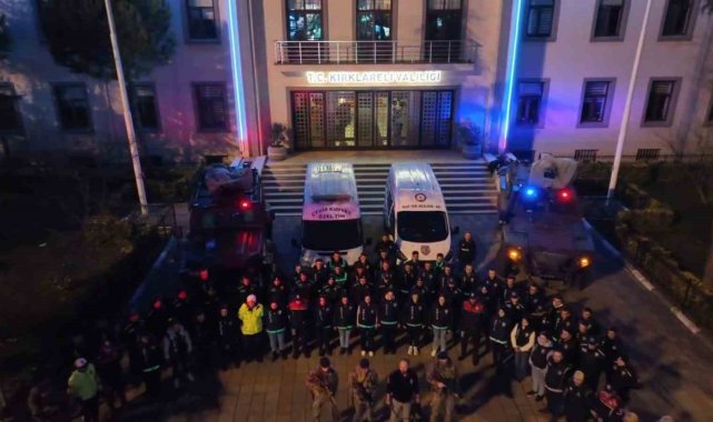 Kırklareli'nde yılbaşı gecesinin huzur ve güven içinde geçirilmesi amacıyla İl Emniyet Müdürlüğü ekipleri tarafından kent genelinde geniş çaplı denetimler gerçekleştirildi.Kent merkezi başta olmak üzere ilçe girişleri, ana arterler, eğlence mekânlarının bulunduğu noktalar ve uygulama alanlarında yapılan denetimlerde polis ekipleri yoğun mesai harcadı. Uygulamalarda araçlar tek tek durdurularak sürücü ve yolcuların kimlik kontrolleri yapıldı, alkol denetimleri ve evrak kontrolleri titizlikle gerçekleştirildi.Yaya ve araç trafiğinin yoğun olduğu bölgelerde oluşturulan kontrol noktalarında şüpheli kişi ve araçlara yönelik denetimler artırılırken, yılbaşı gecesinde yaşanabilecek olumsuzlukların önüne geçilmesi hedeflendi.Denetimler sırasında vatandaşlarla da sohbet eden polis ekipleri, yeni yıl temennilerini ileterek trafik kurallarına uyulması konusunda uyarılarda bulundu. Yapılan uygulamalarla kamu düzeninin sağlanması ve vatandaşların yeni yıla güvenli şekilde girmesi amaçlandı.Yılbaşı denetimleri İl Emniyet Müdürlüğü koordinesinde, polis ekiplerinin katılımıyla gece boyunca aralıksız devam etti.