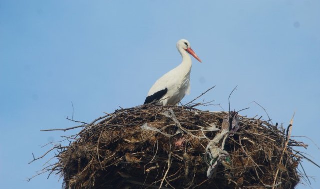 Yılın ilk leyleği yuvasına kondu