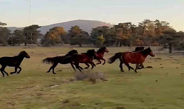 Yılkı atları doğada özgürce koşuyor