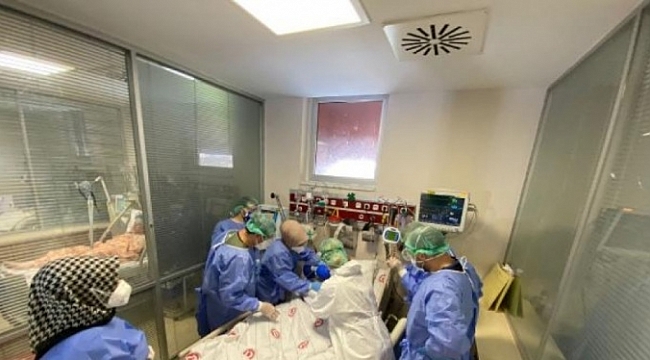 Ankara Eğitim ve Araştırma Hastanesi Covid-19 Yoğun Bakım Servisi'ndeki kameralı takip sistemi ile koronavirüs hastalarına hayati müdahaleler erken yapılabiliyor. Yoğun bakım odalarına yerleştirilen kameralar ile görüntüler oda önü, yoğun bakım salonundaki kolona ve hemşire masalarındaki ekranlara düşüyor. Hastadaki değişimler odaya girmeye gerek kalmadan anlık olarak ekranlardan anbean takip ediliyor. Hastaların kalp ritimlerindeki değişimler de ekranlardan izleniyor. Görüntülü sistem ile Covid-19 hastalarına olası olumsuz durumlarda erken müdahale ediliyor.