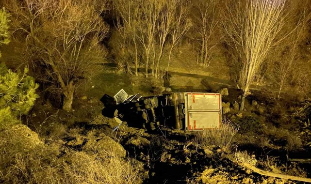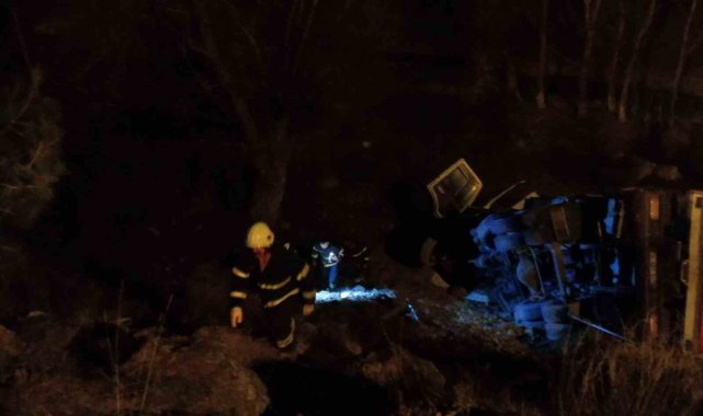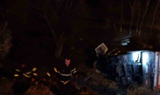 Yokuş aşağı inerken virajı alamayan kamyon şarampole uçtu: 1 yaralı