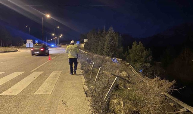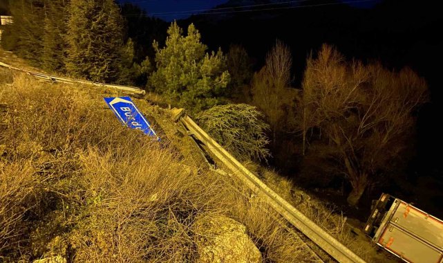 Burdur-Antalya karayoluna Büğdüz istikametinden yokuş aşağı inerken virajı alamayan kamyonun bariyerleri kırarak şarampole uçması sonucu 1 kişi yaralandı.