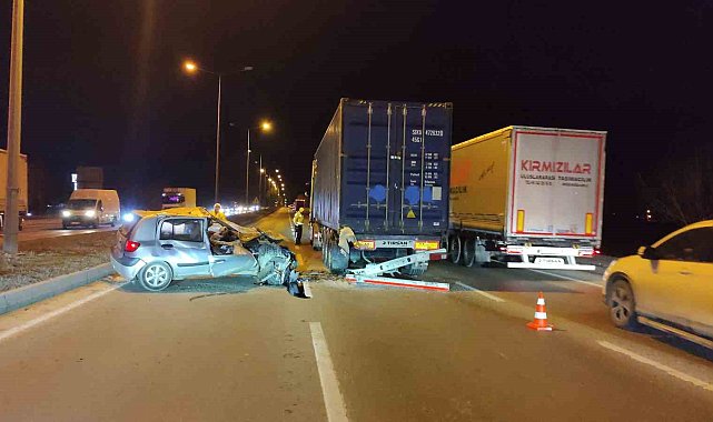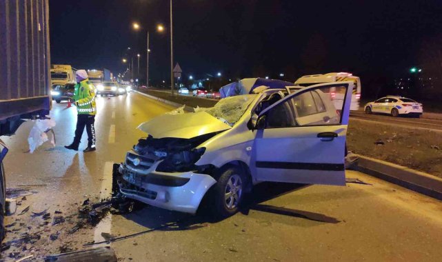 Yol ortasında arızalanan tıra arkadan otomobil çarptı, 1 kişi yaralandı