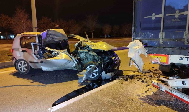 Eskişehir'de arızalanarak yol ortasında kalan tıra arkadan çarpan otomobil sürücüsü yaralandı.