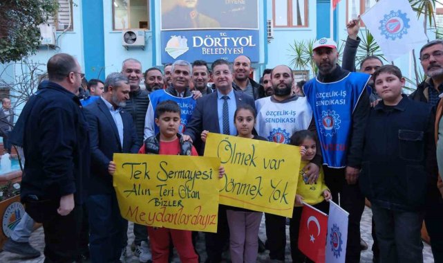 Hatay'da yaklaşık 228 gündür grevde olan Yolbulan Metal fabrikası işçilerine destek Dörtyol Belediye Başkanı Bahadır Amaç'tan geldi.