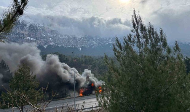 Adana'da Pozantı istikametine giden yolcu otobüsü alev alev yandı. Otobüsün yanmaya başlamasıyla yolcuların tahliye edildiği öğrenildi.Edinilen bilgiye göre otobüsteki yangın, otoyol Pozantı istikameti Tekir mevkiinde meydana geldi. İddiaya göre, birden yanmaya başlayan ve içinde yolcu olan otobüsü şoför yol kenarına çekti. Yolcular hemen tahliye edilirken otobüs alev topuna döndü. Tamamen yanan otobüs demir yığınına dönerek kullanılamaz hale geldi.Alev topuna dönen yolcu otobüsü nedeniyle olay yerine gelen trafik ekipleri otoyolu bir süre trafiğe kapattı. İtfaiye ekiplerinin gelip otobüsü söndürmelerinden sonra yol trafiğe açıldı. Polis olayla ilgili inceleme başlattı.