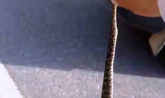 Yolda gördüğü zehirli yılanı elleriyle yakaladı