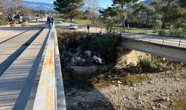 Antalya'nın Kaş ilçesinde, yoldan çıkan otomobil köprünün bariyerlerine vurarak dereye uçtu. Kazada, sürücü hayatını kaybetti.