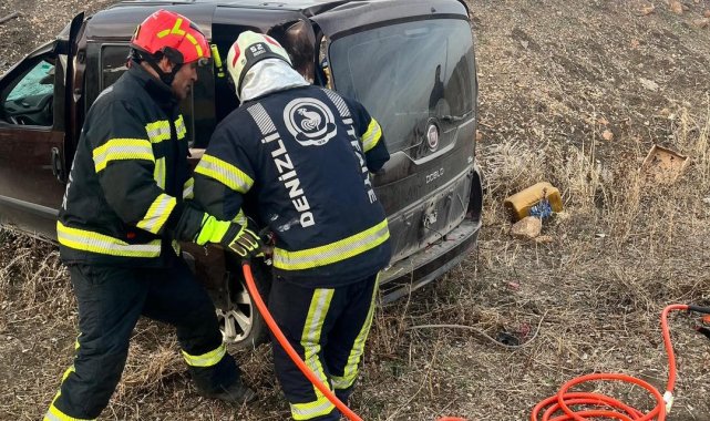 Denizli'de seyir halindeki otomobil, sürücüsünün direksiyon hakimiyetini kaybetmesi sonucu yoldan çıkarak tarlaya uçtu. Kaza sonucunda araçta sıkışan 2 kişi, itfaiye ekipleri tarafından kurtarıldı.