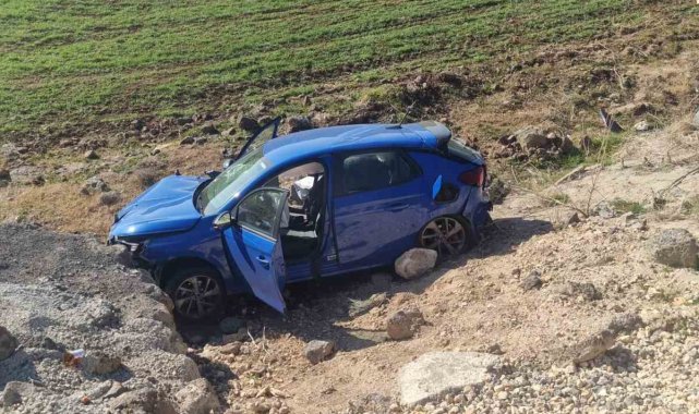 Yoldan çıkan otomobil taşlara çarptı: 2 yaralı