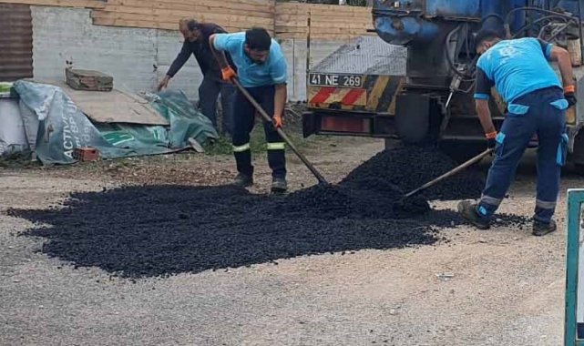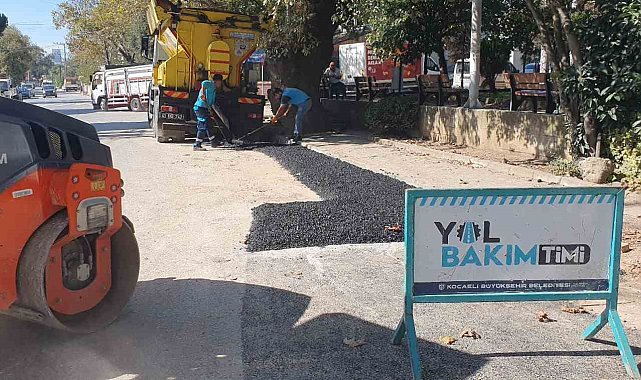 Kocaeli'de belediye ekipleri, kent genelinde yollarda bakım ve onarım çalışması yapıyor.