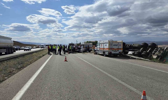Yozgat'ta kamyonla otomobillin karıştığı kazada 3 kişi öldü 2 kişi yaralandı.Edinilen biliye göre kaza Yozgat-Ankara karayolu, Yerköy ilçesi Bölge Trafik Müdürlüğü yakınlarında yaşandı. Ankara istikametine gitmekte olan M.U. idaresinde ki 63 AAU 229 plakalı kuru ot yüklü kamyonla karşı istikametten gelmekte olan H.B. idaresindeki 34 EHK 628 plakalı otomobil kafa kafaya çarpıştı. Çarpışmanın etkisi ile kamyon şarampole devrilirken otomobil adeta ikiye bölündü. İlk belirlemelere göre kazada otomobilde bulunan Hasan Bozoğlu, Şahin Bozoğlu ve Fatma Bozoğlu öldü. Kamyonda bulunan M.U. ile A.M. ise yaralandı. Kazayla ilgili inceleme sürüyor.