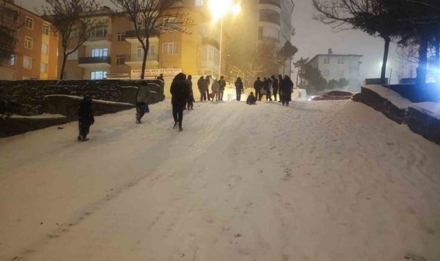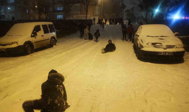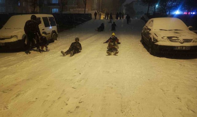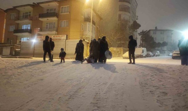 Yozgat'ta akşam saatlerinde etkili olan kar yağışı, cadde ve sokakları adeta kayak pistine çevirdi. Uzun süredir kar yağışını bekleyen çocuklar ve aileleri, tepsi, naylon poşet ve tahta kızaklarla yokuşlara akın ederek karın keyfini doyasıya yaşadı.Yağan karla birlikte mahalle aralarında toplanan vatandaşlar, ellerine geçirdikleri çeşitli malzemelerle kayarak eğlenceli anlar yaşadı. Kimi zaman düşüp kalkan, kimi zaman da profesyonel kayakçıları aratmayan çocuklar, karın tadını çıkarırken renkli görüntüler ortaya çıktı. Çocukların eğlencesine büyüklerin de katılmasıyla mahalle yokuşları neşeli anlara sahne oldu.Ailesi ve komşularıyla birlikte kar eğlencesine katılan Kadir Dişli, "Yozgat'ta kışlar eskiden daha fazla olurdu. Bu gece de güzel bir kar yağışı var. Çocuklarla, komşularla çıkalım dedik. Karın tadını çıkarıyoruz. Çocuklarla, komşularla tepsileri, naylonları, poşetleri toparladık. Güzel bir eğlence yapıyoruz" dedi.Kar yağışını fırsata çeviren Nur Sena Dişli isimli çocuk, "Kar yağdığı zaman direkt çıktık dışarı komşularla beraber çok eğlenceli. Kar halen yağmaya devam ediyor. Umarım da yarın tatil olur" ifadelerini kullandı.