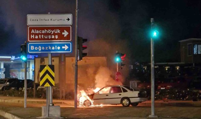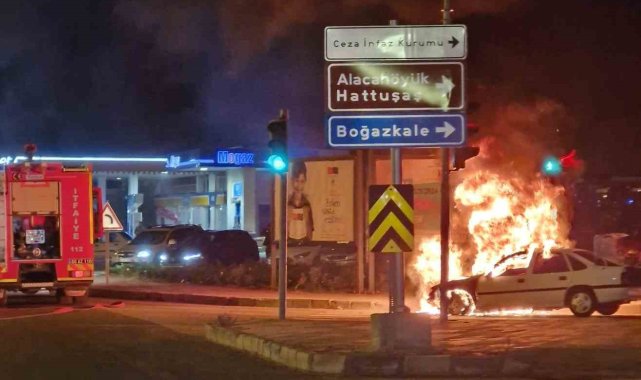 Yozgat'ta seyir halindeki otomobil alev aldı