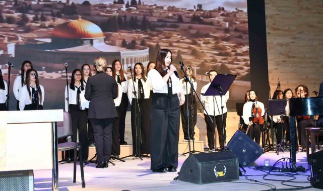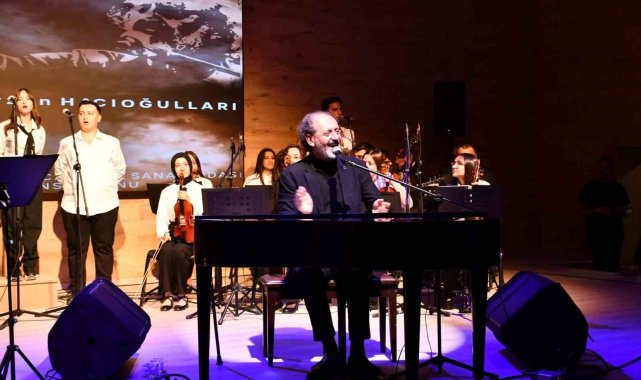 Çorum'da düzenlenen etkinlikte ünlü sanatçı Yücel Arzen Hacıoğulları, öğrencilerle birlikte sahne aldı.