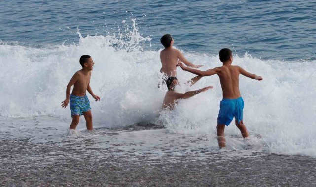 Yüksek kesimlerinde kar etkili olan Antalya'nın sahilinde deniz keyfi